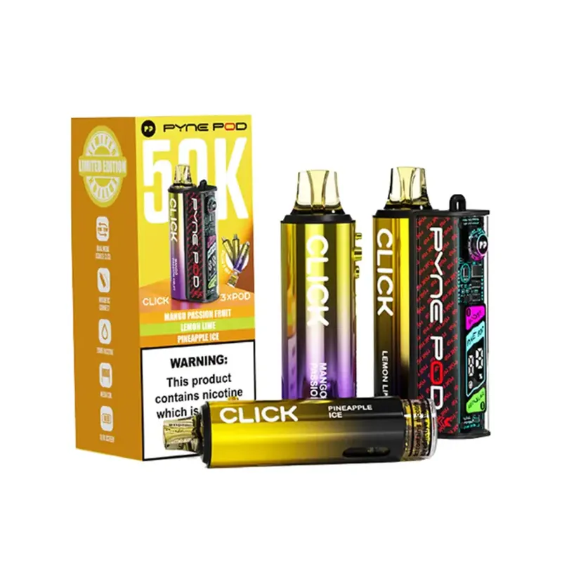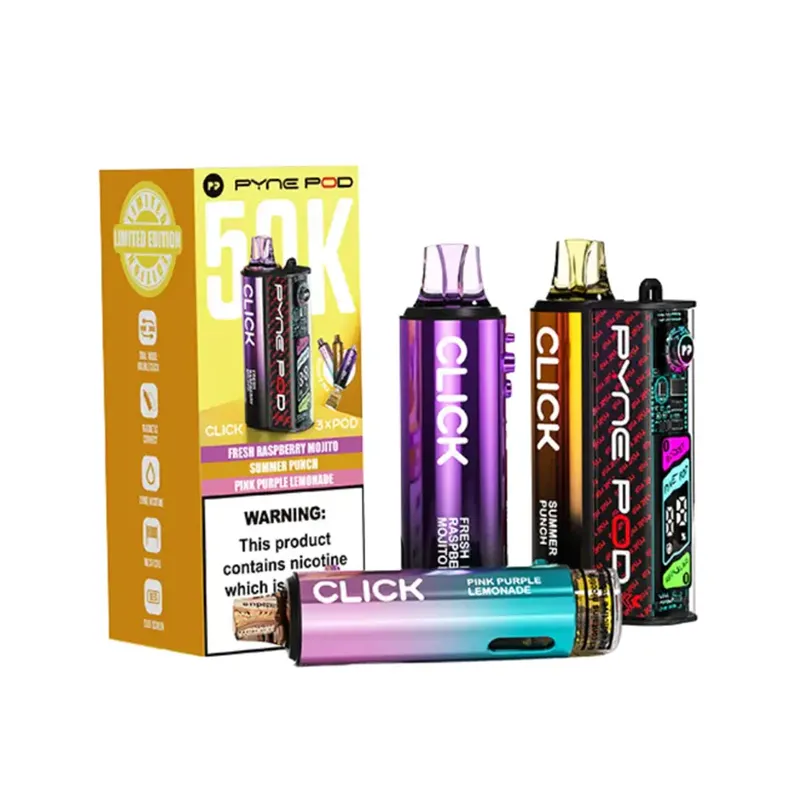 Crafted with premium materials, the Pyne Pod Click 50K features a stylish and ergonomic design that fits comfortably in the hand. Its durable construction ensures longevity, while the modern aesthetic makes a bold statement wherever you go.