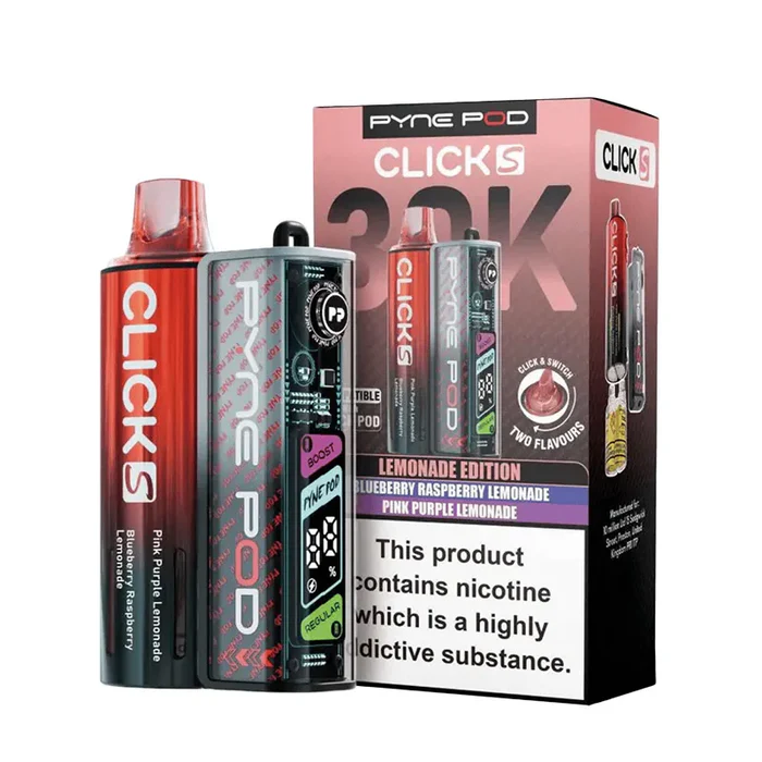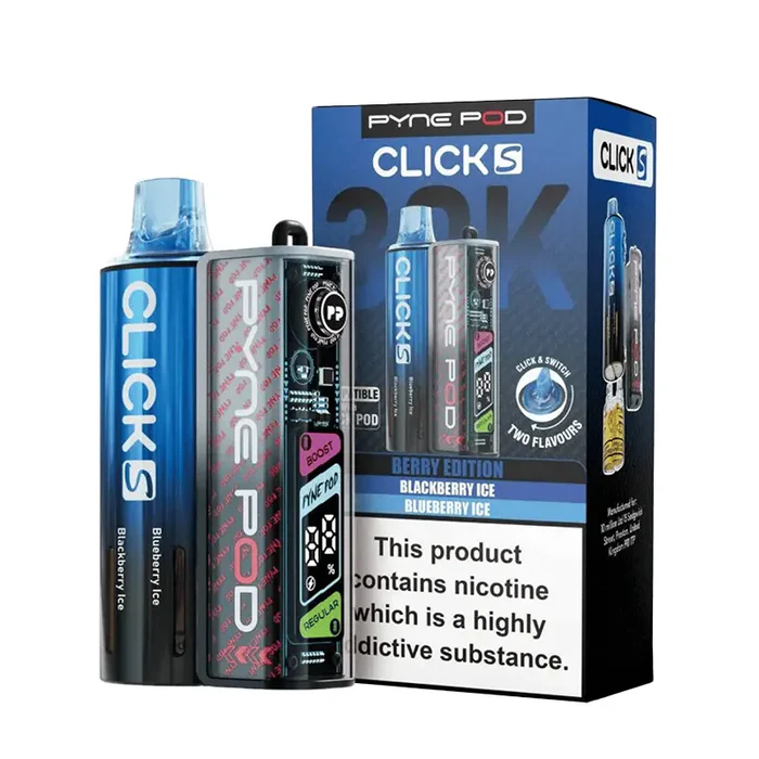 Pod Vape that has the capability of long life performance, convenience, and dual flavour capability in one small package. It is a higher puff capacity, smart dual-flavour upgrade of the Pyne Pod Click Kit, created to provide a more advanced and convenient vaping experience. With a capacity of 30000 puffs, the kit is suitable for users seeking to have a cheap and efficient substitute for disposable devices. Compatible with Pyne Pod Click 30K pods, available in best selling Pyne Pod Click 50K flavours, makes it an ideal option for users looking for simple, yet premium big puff vape.